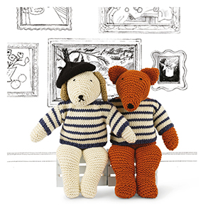 Packed full of 50 knitting patterns this collection of knitting patterns offers so many options. Knit Foxy and Banjo as they drink coffee and talk about their passion, music. Knit Lolly’s cute beret and coat that she wears as she visits the market on her way home from the publishing company where she works.