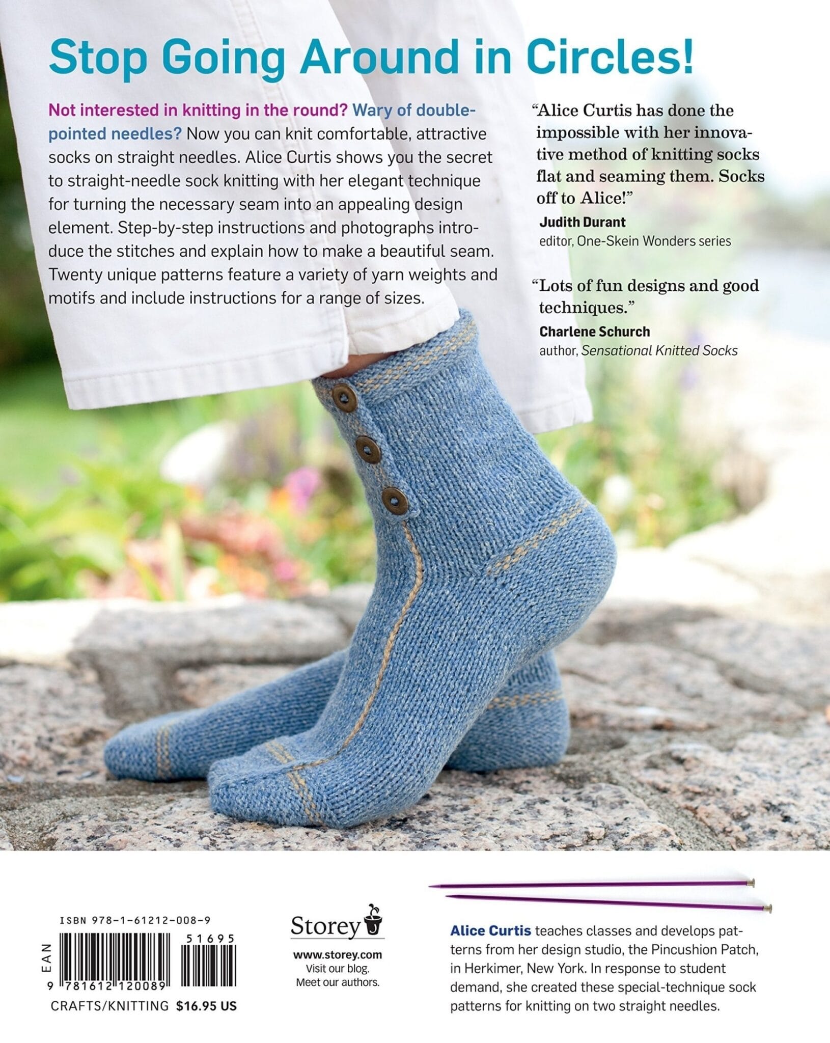Finally! A sock knitting technique for all those knitters who prefer sticking to two straight needles! All beginners learn to knit on straight needles and even those more experienced may find themselves uncomfortable with the multiple needles commonly used to knit socks in the round. Now, knitters can create beautiful, comfortable socks with this straight-needle technique developed by author Alice Curtis. Knit Your Socks on Straight features step-by-step visual instructions for this ground breaking technique, along with 20 unique patterns. These flat-knit sock patterns creatively incorporate the seam into the design, feature a variety of yam weights and motifs – from cables to argyle- and include instructions for a wide range of sizes. With this book, sock knitting is at last accessible and easy for knitters of any level.