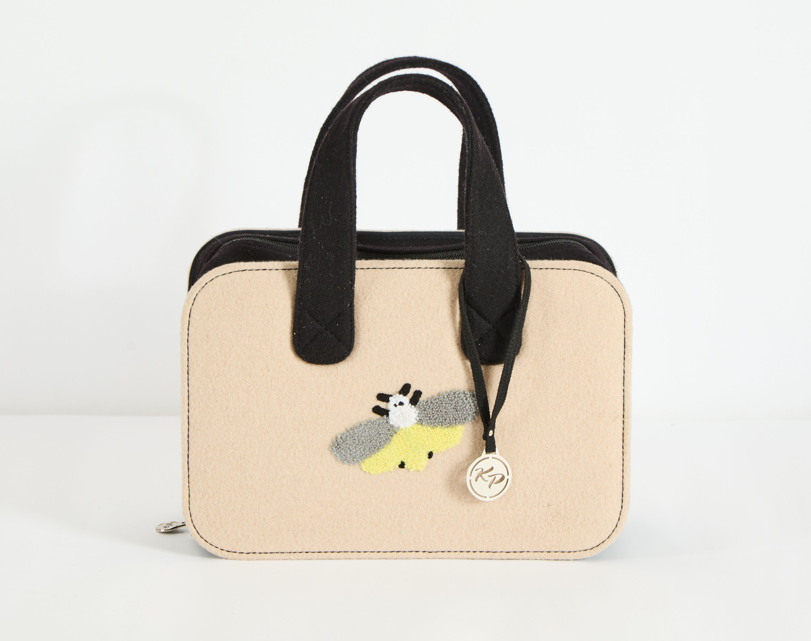 The Doctor Bags are available in 2 sizes, The Bumblebee Doctor Bags have embroidered bee on beige background, with solid felt handle