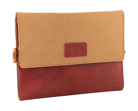Set of 11 sizes of Ginger Interchangeable Circular Needles packed in a premium needle case with chart keeper in burgundy & beige finish.