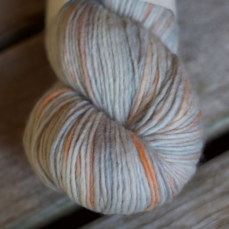 A single-ply, crossbred wool at 23 micron (Merino + Lincoln). This yarn is being dyed in small variety of colours, and available for a limited time.