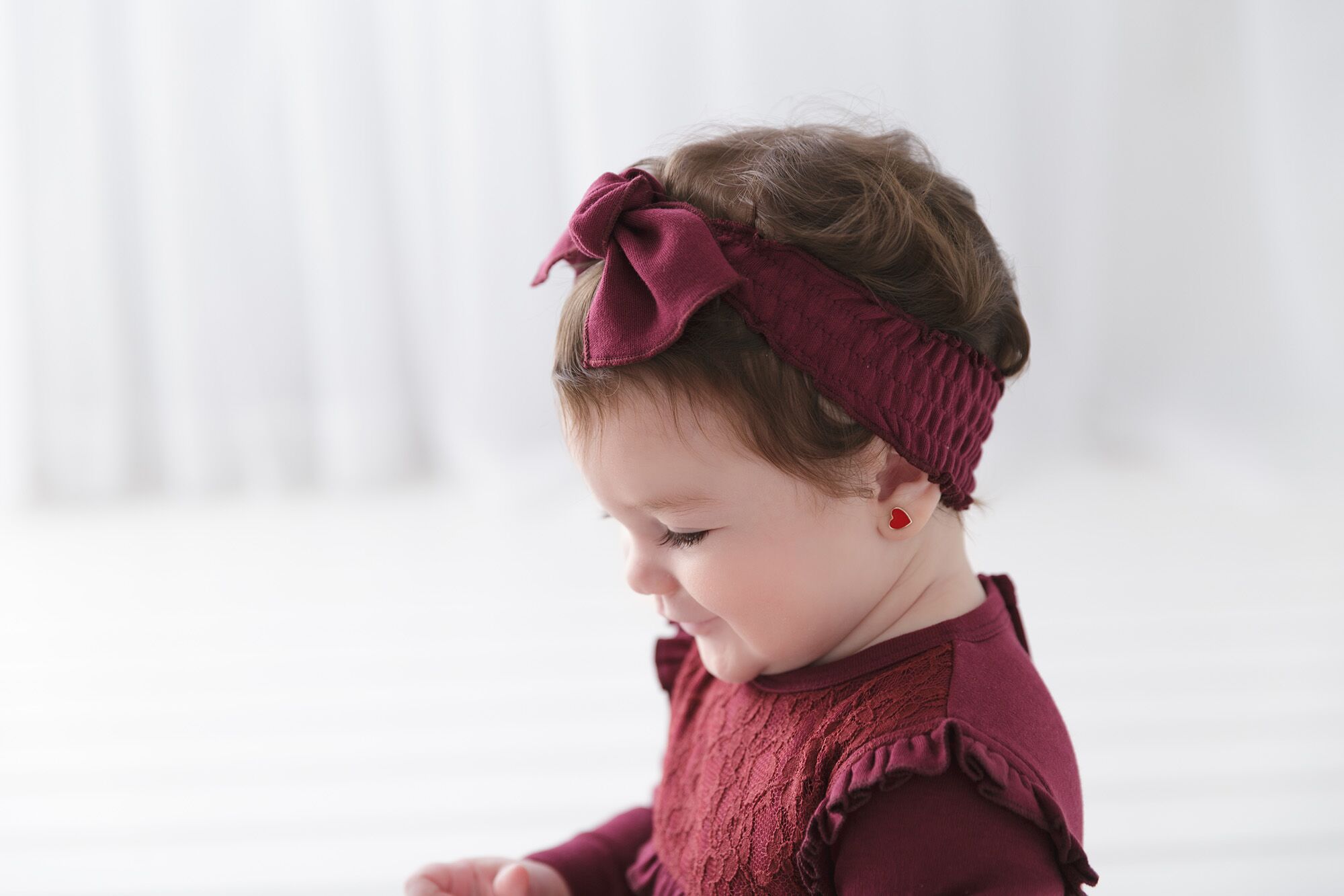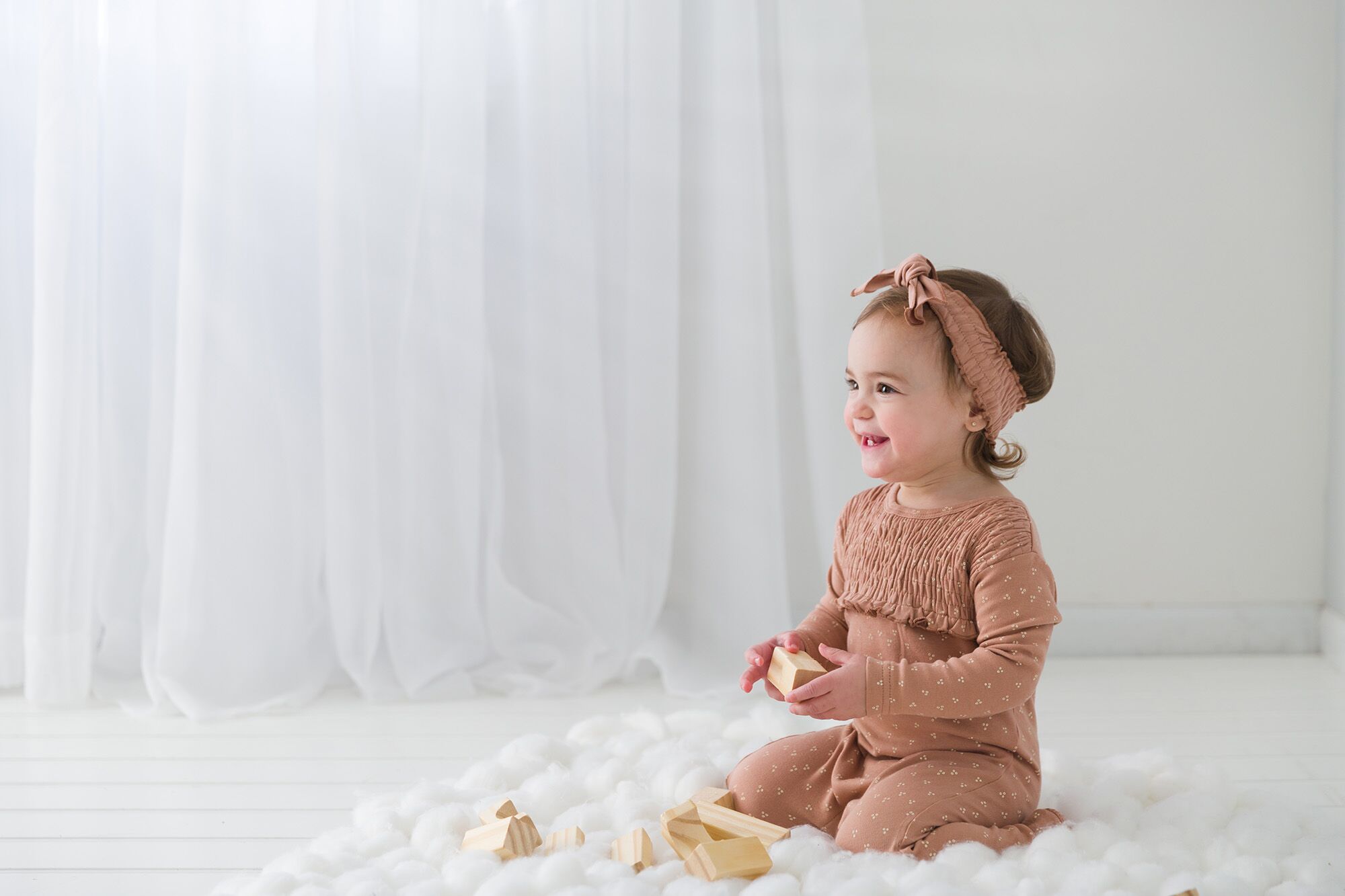 • smocked elastic headband with adjustable tie front to accommodate your growing baby