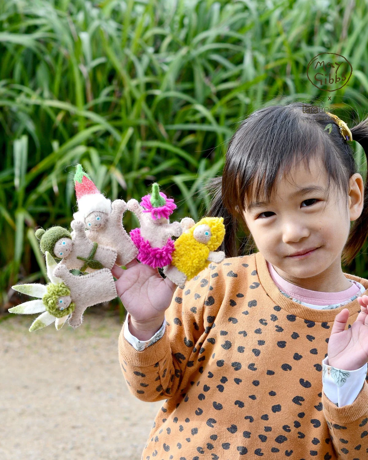 May Gibbs x Tara Treasures Wool Bush Babies Finger Puppets Set