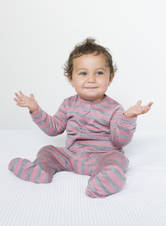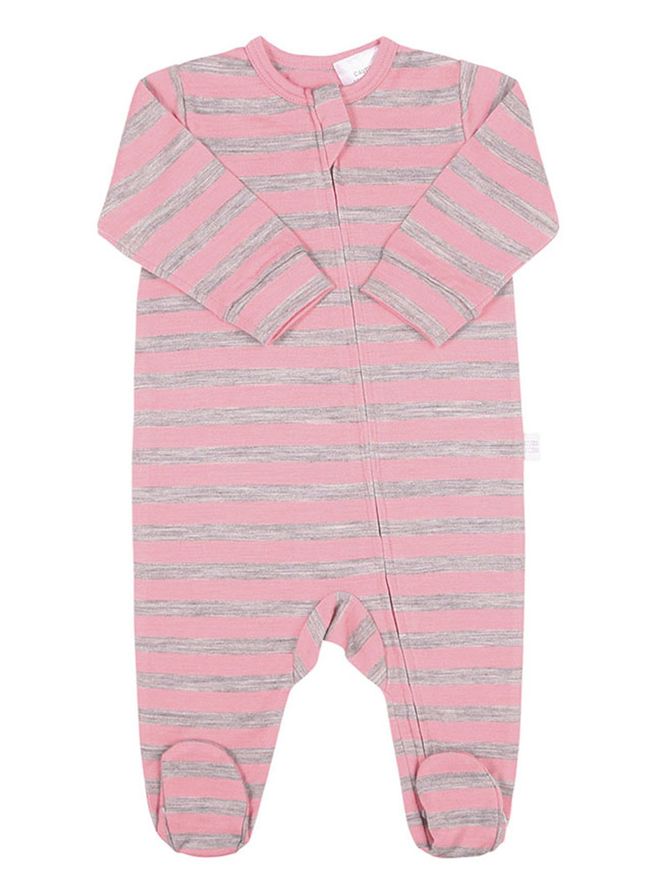 Merino Wool Baby All In One Bodysuit Pink Stripe