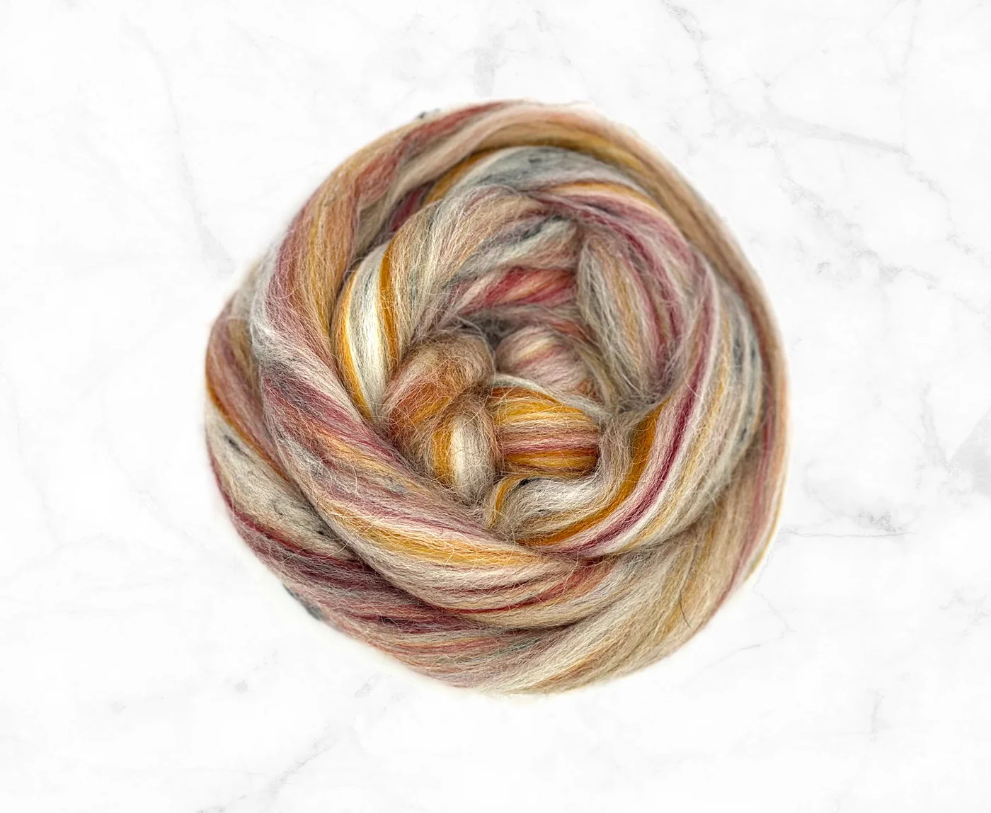 it was a very unusual fibre for me to spin. But experience was priceless. It inspired me to play more with fibre blending. The batch I received had a good amount of maroon coloured fibre