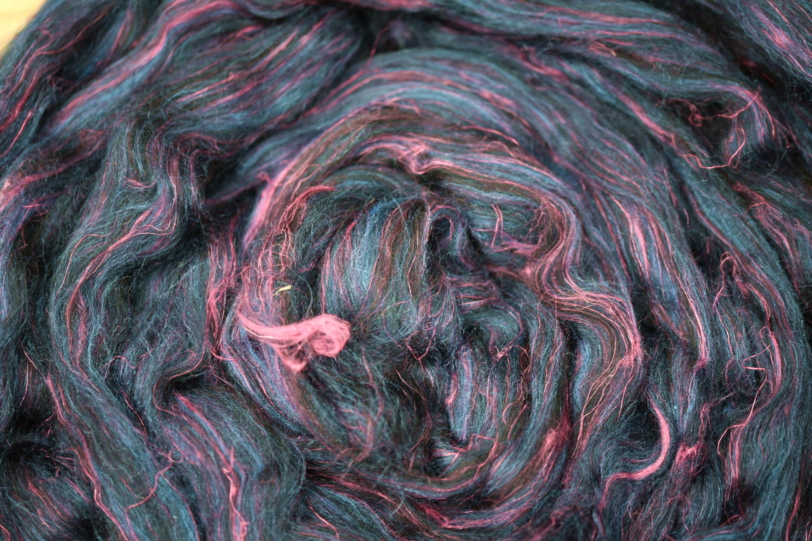 Merino Wool, Flax & Tussah Silk Roving 100g – Charcoal Bloom