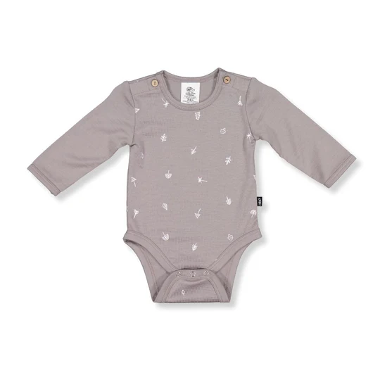 Merino Wool Long Sleeve Riley Bodysuit Taupe Nature