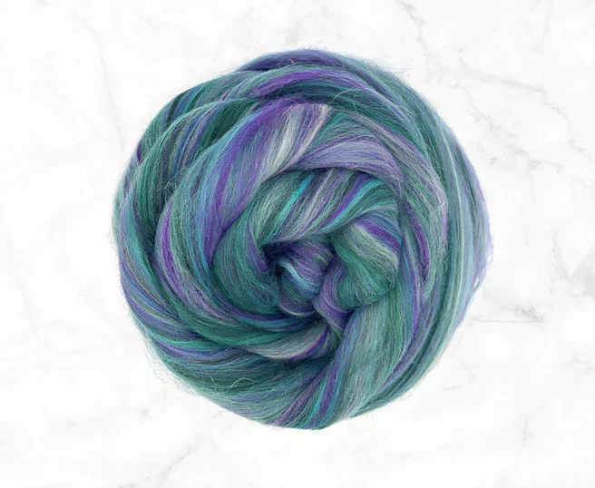 A gentle blend of Merino wool creating a soft spinning and felting blend.
