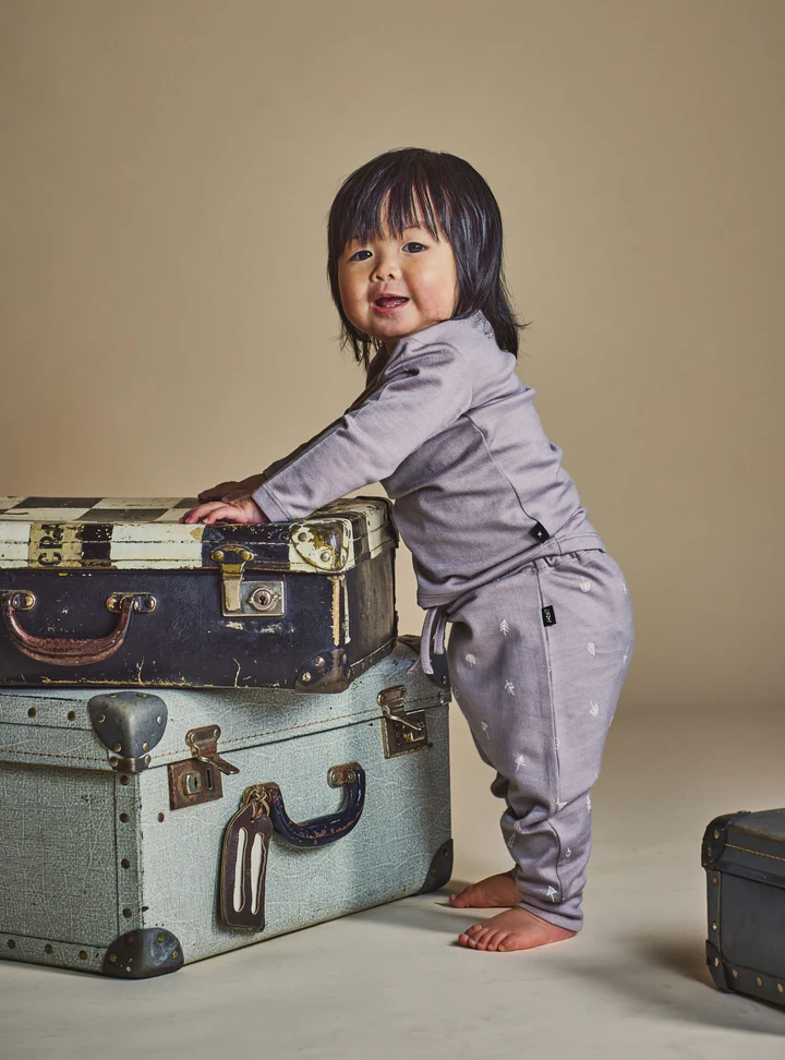 The Asher Dropcrotch pant features a looser fit through the mid section, a non-elasticated drawstring, and thick cuffs for added warmth. Whether it be cloth nappies or a bigger tummy, some babies just need a little extra room.