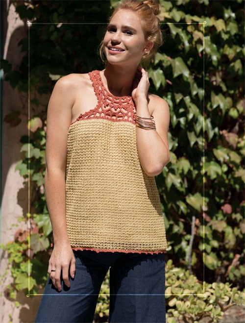 • Stay radiant with bright colors and bold patterns including crocheted tanks, totes, and tees!