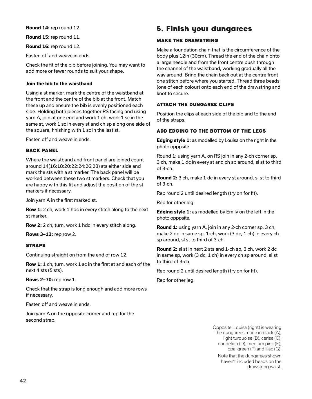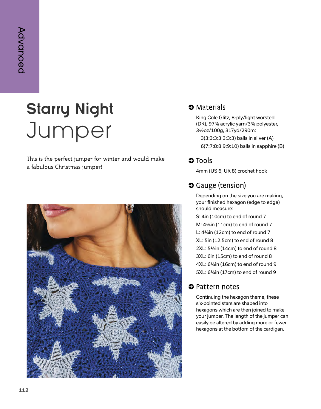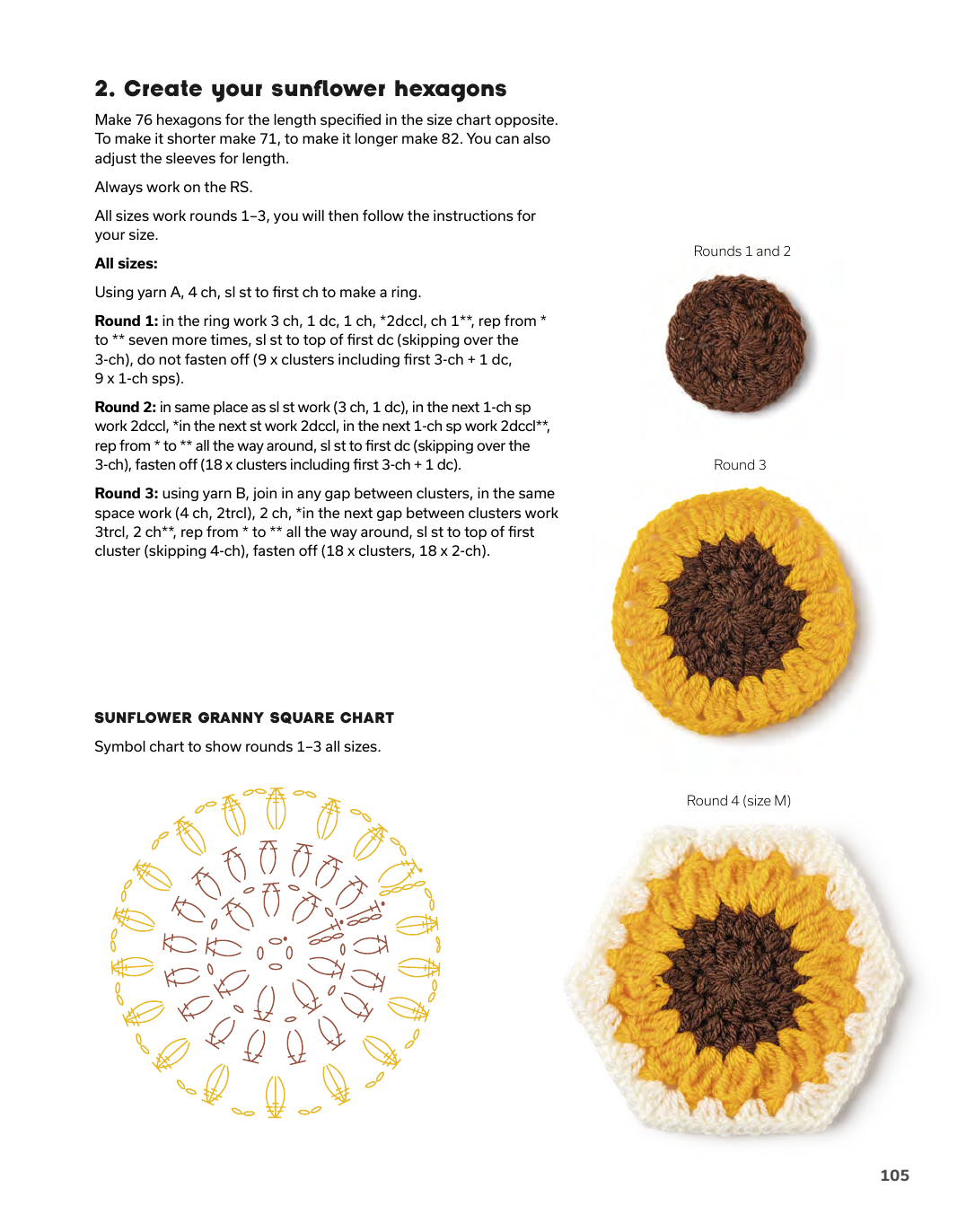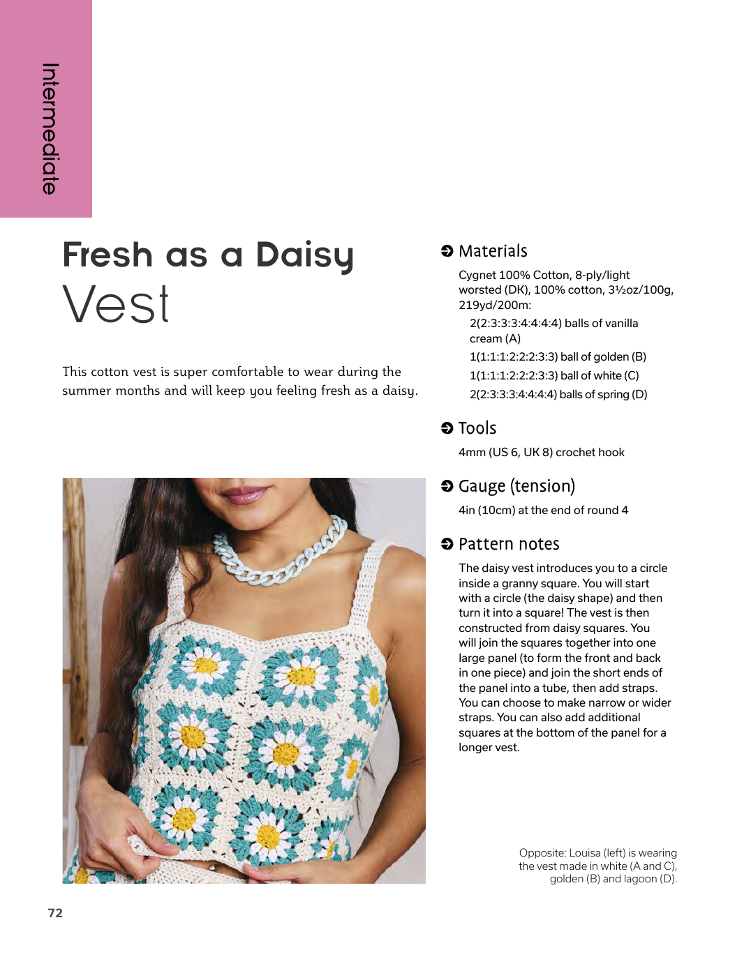 From snuggly statement cardigans and jumpers to festival-worthy shorts, dungarees and a bag, each project features a different granny design, including traditional granny squares, granny stripes, hexies, solid granny squares and granny circles. Each project gives you clear guidance on sizing and helps you calculate the number of granny squares you need. There are clear, beginner-friendly instructions given with step-by-step photos, charts and written patterns, along with simple construction diagrams to help you piece together and finish your garments with ease.