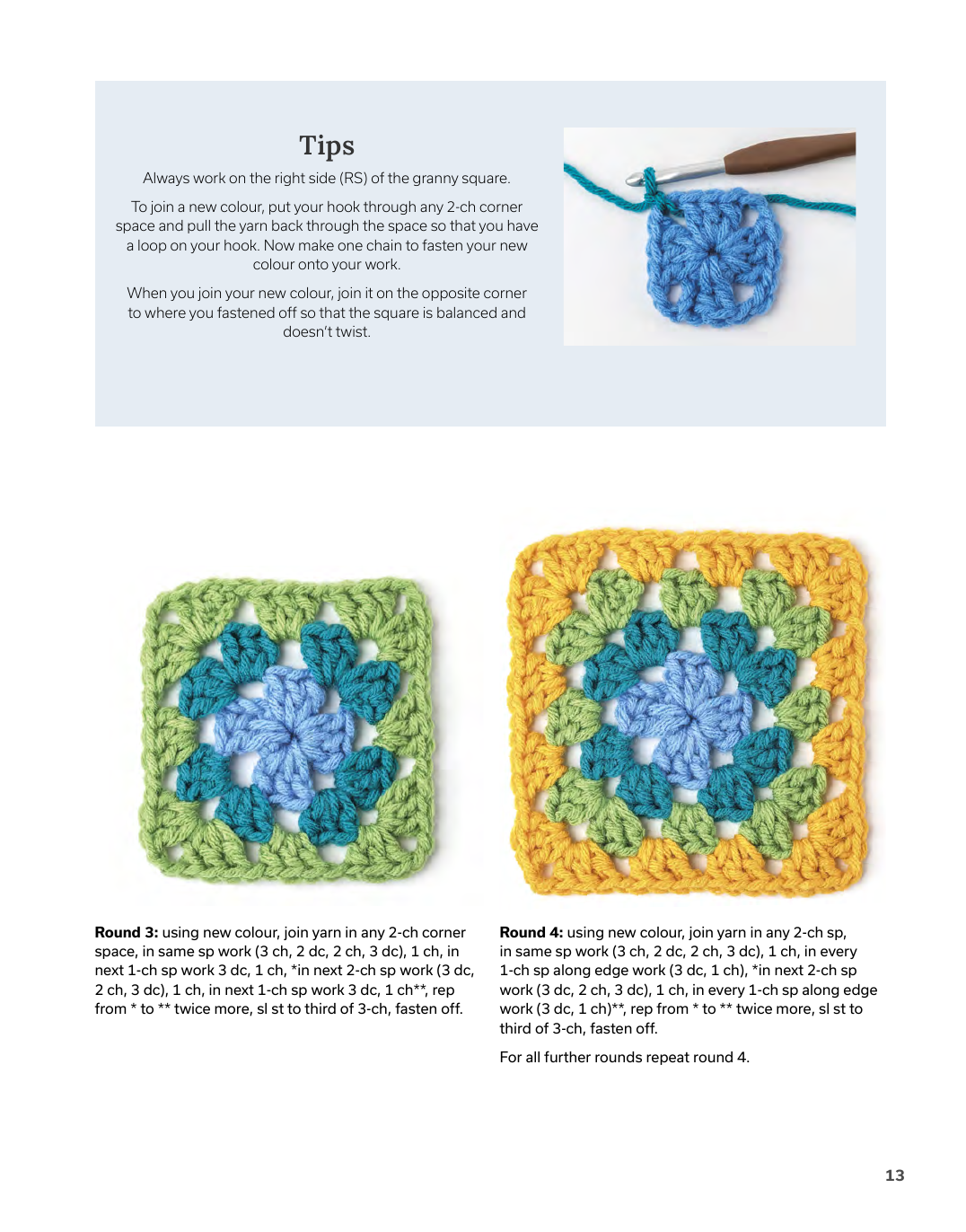 - Helpful tips and tricks for creating and blocking your granny squares.