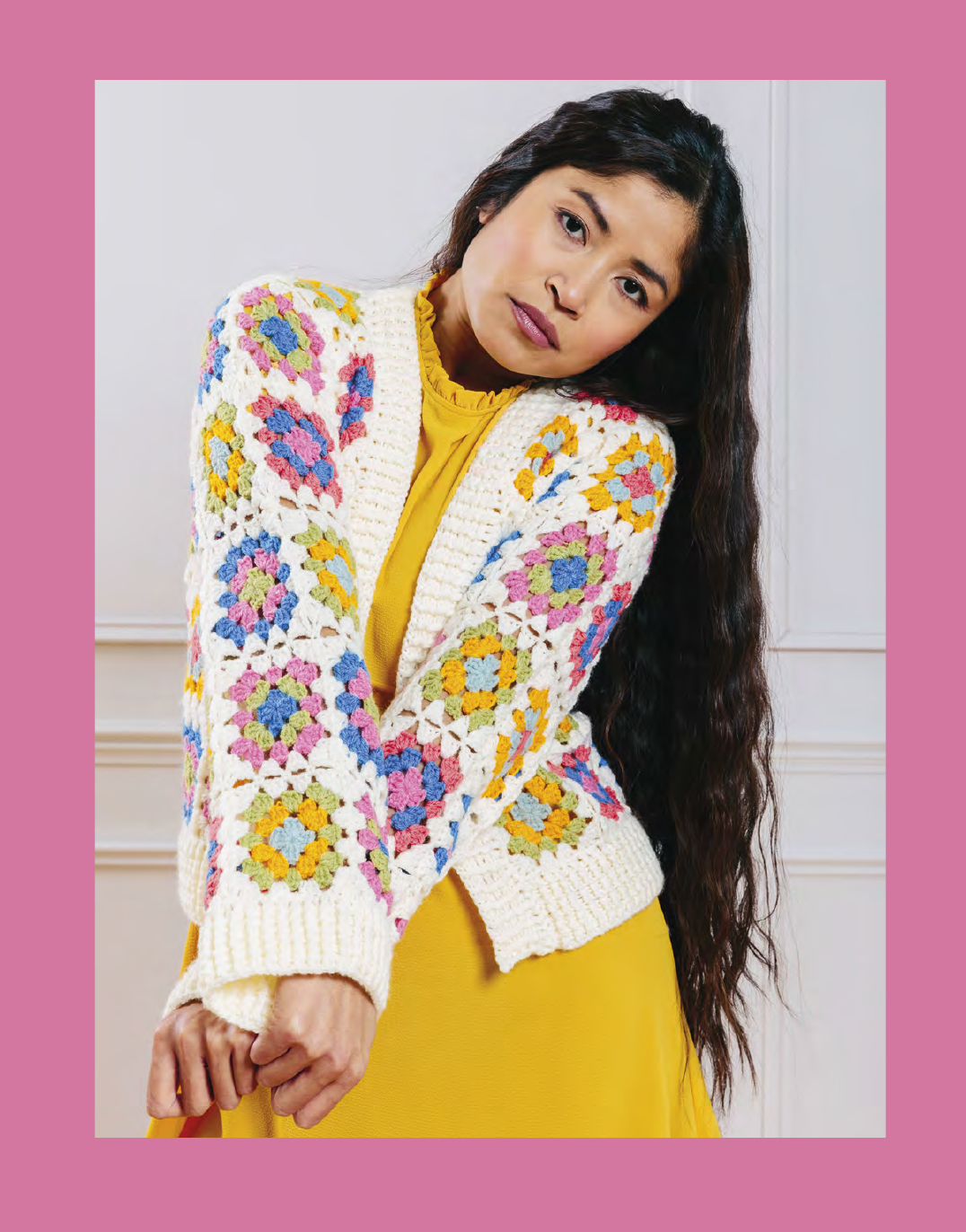 With #grannysquare tagged in over 1.3 million posts on Instagram and the term ‘granny square fashion’ returning over 12.2 million online search results, this gorgeous trend is here and happening. So jump on board and you’ll be on your way to creating your own gorgeous, colourful and contemporary wardrobe of granny-square garments and accessories in no time!
