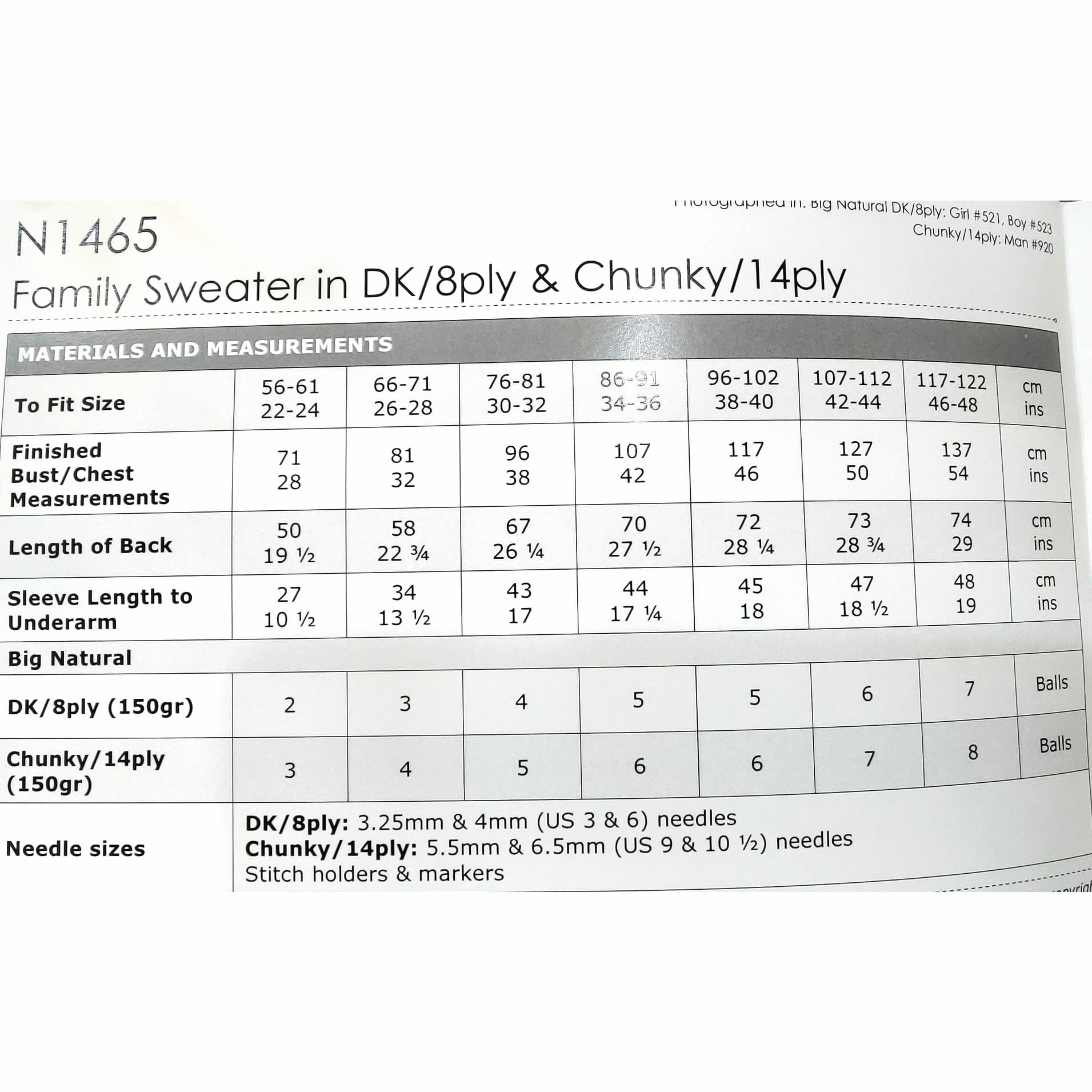 Naturally Family Sweater 8 & 14 Ply Pattern