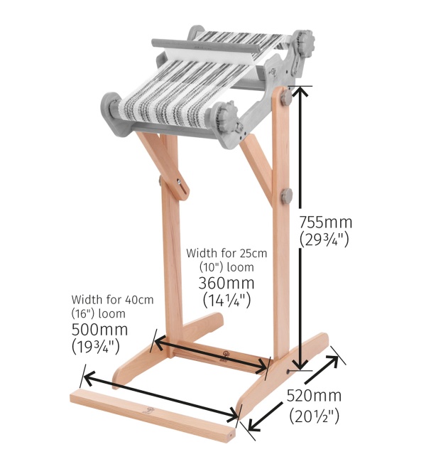 A strong and sturdy loom stand is available for the SampleIt Loom 25cm (10ins) and 40cm (16ins). Includes cross rail for both loom sizes.