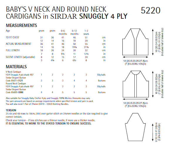 Sirdar 4 ply Baby Cardigan Premature – 2 Years