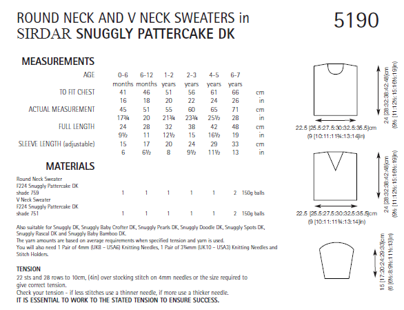 Sirdar 8 Ply Jumper Pattern V or Round Neck – 5190