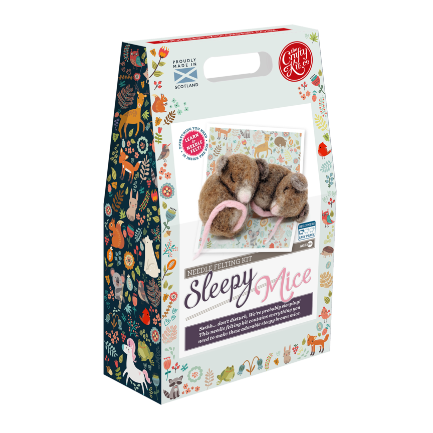 The Crafty Kit Company’s Sleepy Mice needle felting kit contains everything needed to make a pair of adorable sleepy needle felted mice, including step-by-step instructions with clear colour photographs. Finished size approximately 10cm each when complete.