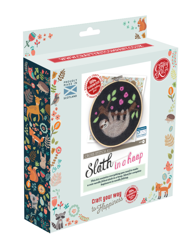 The Crafty Kit Company’s Sloth in a Hoop Needle Felting Kit comes with everything needed to make a lovely 2D felted picture, including a bamboo embroidery hoop, step-by-step instructions with clear colour photographs, and a needle and thread to finish the work off neatly on the back. The hoop is approximately 15cm diameter.