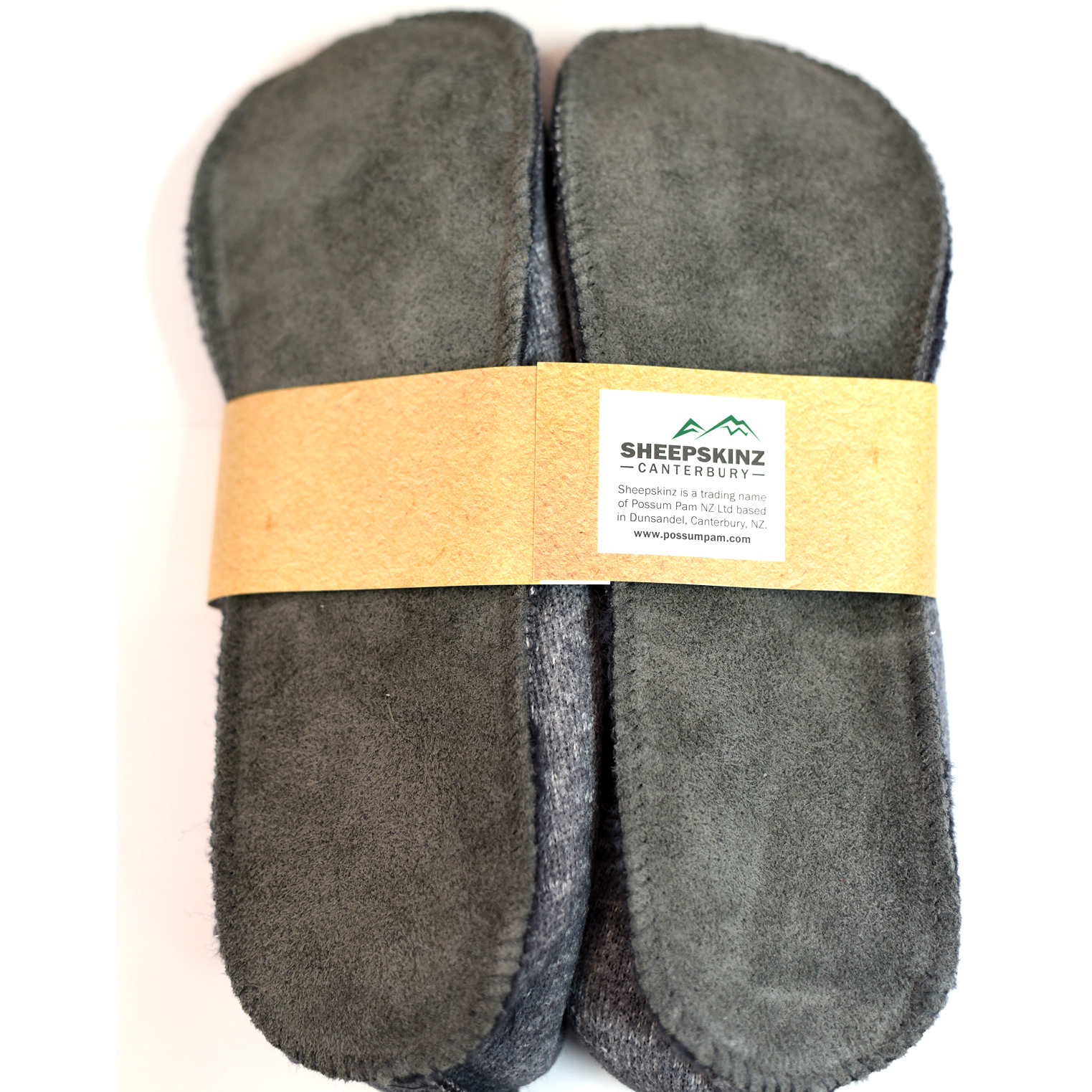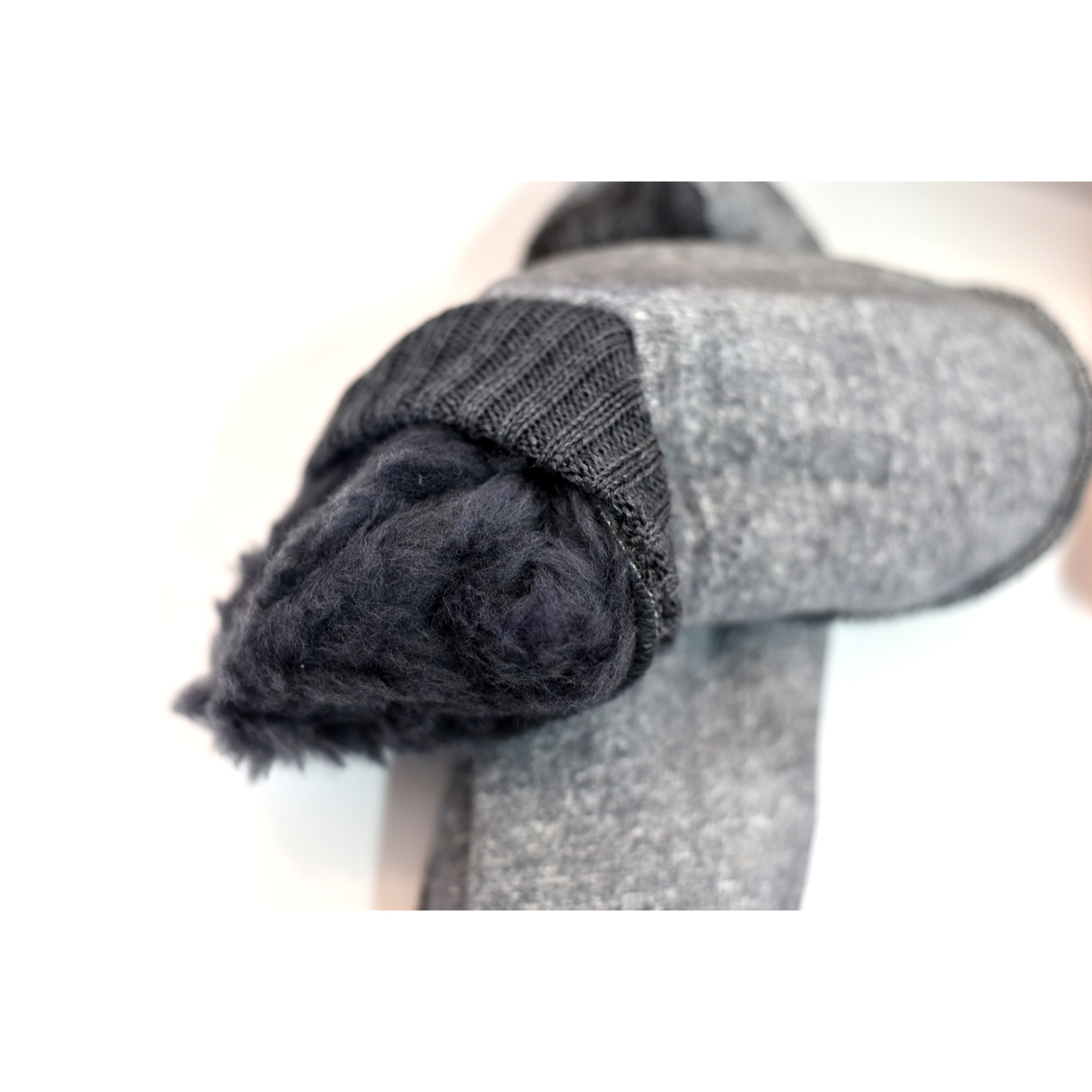 100% Knitted wool outer, Wool collar, fluffy 100% wool inside & a suede sole. Easy to get on and off.