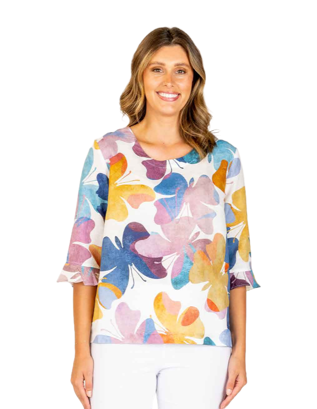 Tania Linen Butterfly Print Top