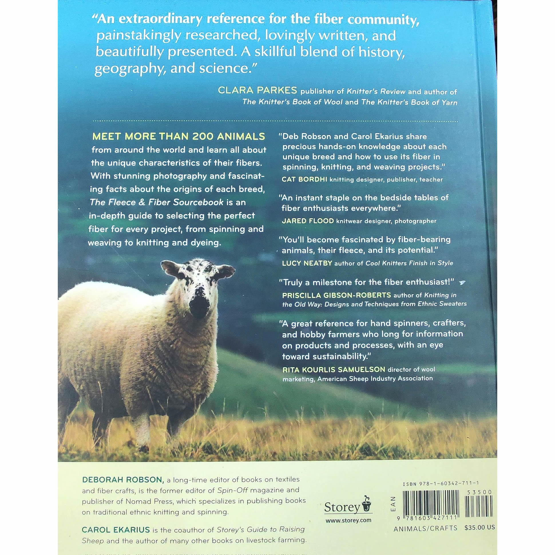 This one-of-a-kind encyclopedia shines a spotlight on more than 200 animals and their wondrous fleece. Profiling a worldwide array of fibre-producers that includes northern Africa’s dromedary camel, the Navajo churro, and the Tasmanian merino, Carol Ekarius and Deborah Robson include photographs of each animal’s fleece at every stage of the handcrafting process, from raw to cleaned, spun, and woven. The Fleece & Fibre Sourcebook is an artist’s handbook, travel guide, and spinning enthusiast’s ultimate reference source all in one.