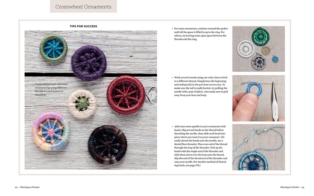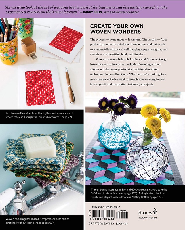 Weaving is a highly accessible craft — over, under is the basic technique — but the stumbling block for many would-be weavers has been the high cost of a commercial loom. The Weaving Explorer removes that barrier, inviting crafters and artists to try out an amazing range of techniques and creative projects that are achievable with a simple homemade loom, or no loom at all! Weavers Deborah Jarchow and Gwen W. Steege take inspiration from the world of folk weaving traditions, adding a contemporary spin by introducing an unexpected range of materials and home dec projects. From sturdy rag fabric grocery bags to freeform wire baskets, delicately woven thread bracelets to colorful woven rugs, crafters will delight in exploring the opportunities to make their own personal variations on these beautiful — and functional — creations.