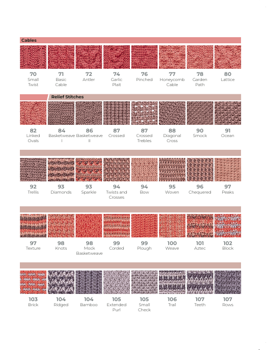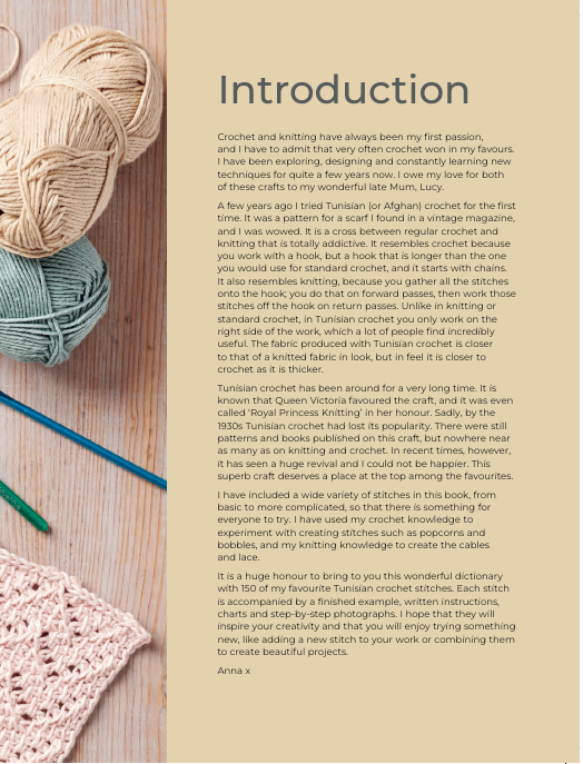 Packed with 150 stitches for beginner and intermediate to advanced, you can start with basic stitches which are organized into themed sections. With actual-size swatches, you can see straight away if you are getting it right. It also includes charts and step-by-step photo instructions. The Tunisian Crochet Stitch Dictionary is designed to get crochet fans discovering new stitches and creative ways of working crochet.