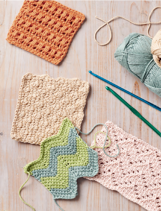This Tunisian crochet stitch collection offers classic and new stitches, designed to keep needlecrafters of all skill levels occupied for years to come. Tunisian crochet produces a fabric that is similar to a knit but worked on a hook. It’s a lot quicker, combining the best of knitting and crochet, creating a dense, durable fabric.