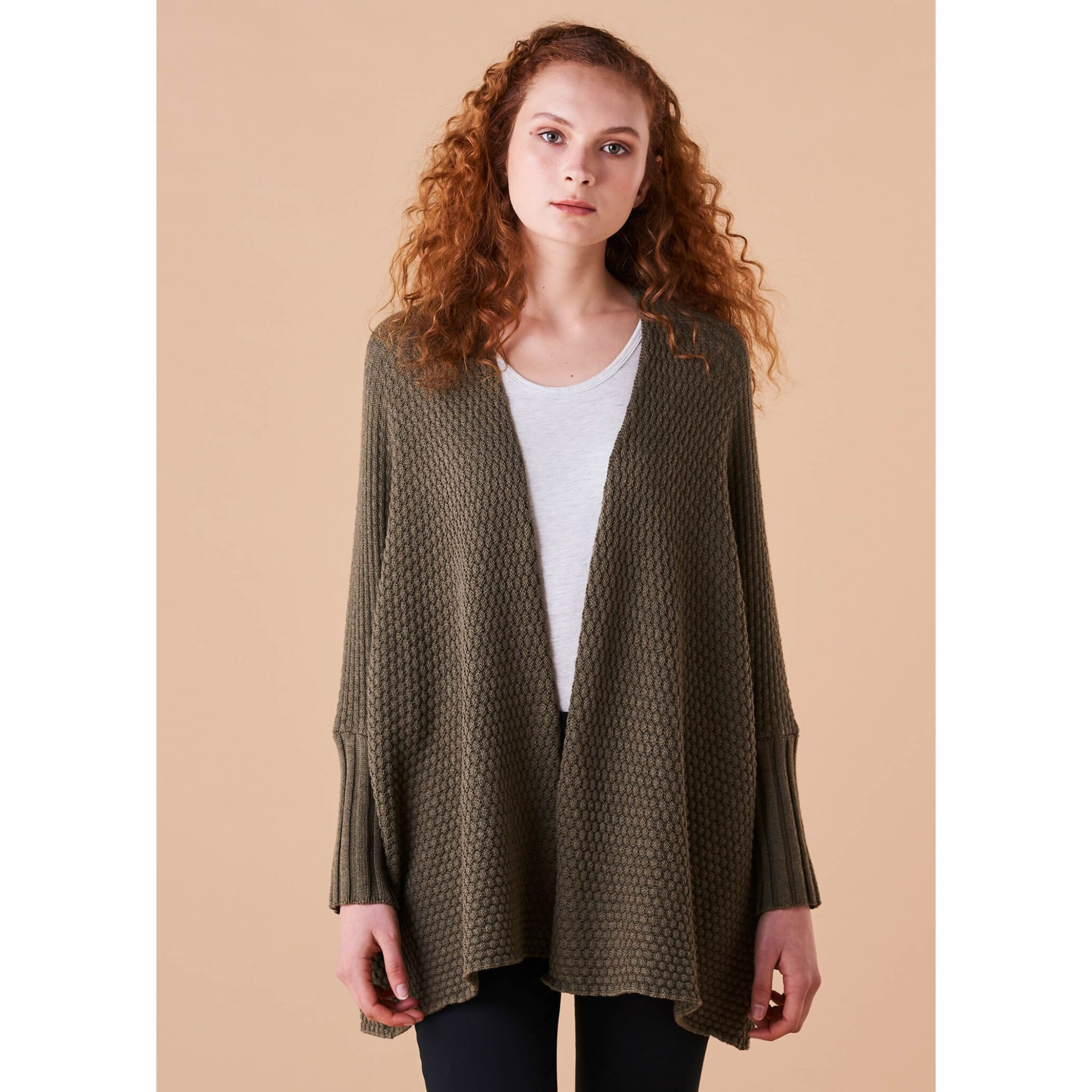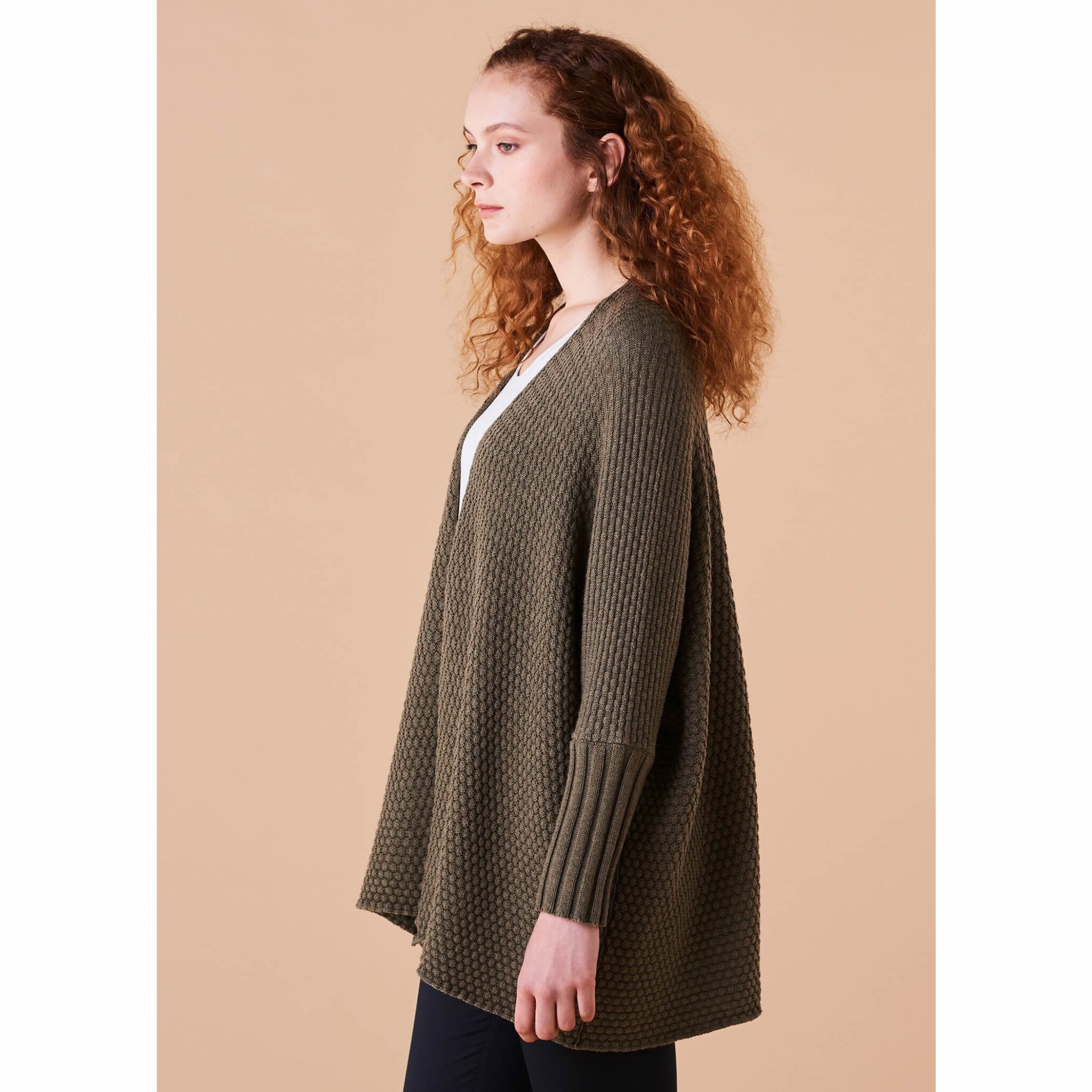 A generous basket weave stitch jacket, which is both chunky in texture yet lightweight to wear. Knitted in an unconstructed swing style with rib sleeves, for those who love a textured knit jacket without the bulk.