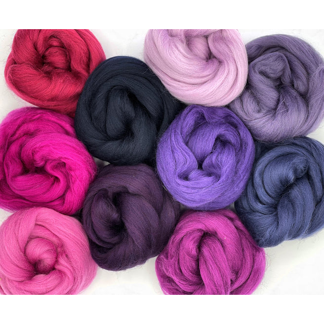 A selection of mixed bags, made up from our 23mic 64’s Merino dyed range. Each bag contains 10 colours of Merino. (25g per colour). Super for needle felting, wet felting, spinning and many other craft uses.