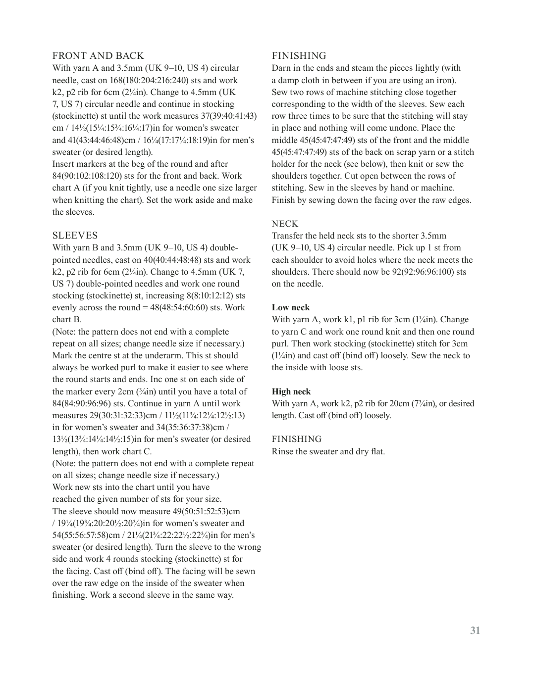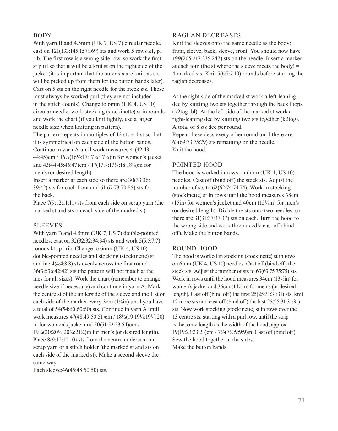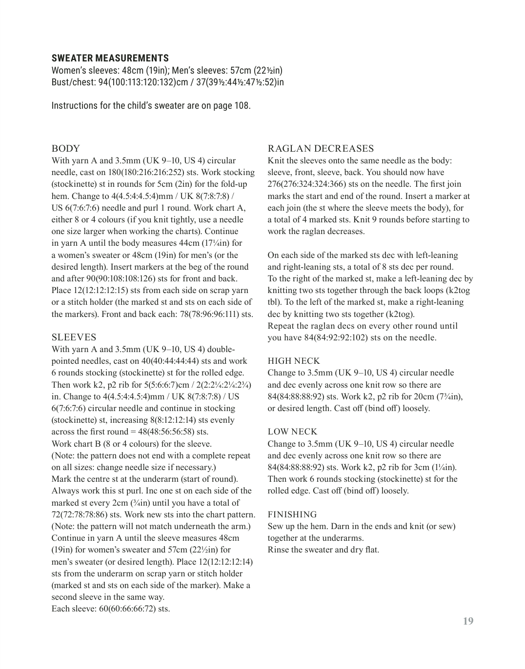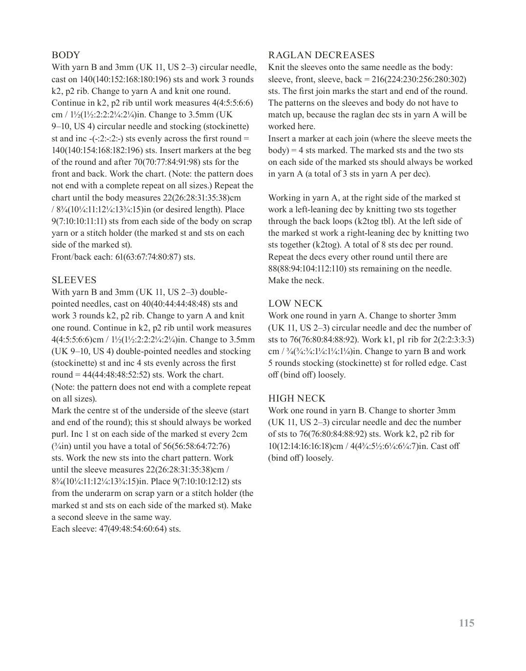 The patterns are suitable for confident knitters, and each contains full written instructions and colourwork charts. Multiple colourways are shown to inspire your own yarn choices, and advice is given on how to measure yourself correctly to select the right size.