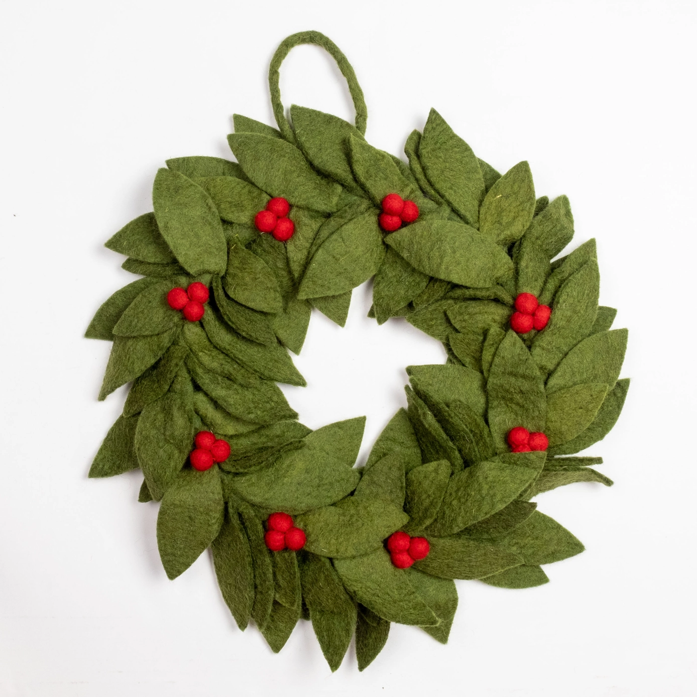 Our felt Wreaths make a festive Holiday decor item. They are hand made made in a workshop in Nepal that follows Fair trade practices. Made from 100% natural wool, no chemicals are used during production.